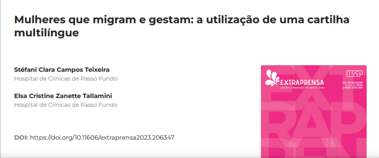O artigo “Mulheres que migram e gestam: a utilização de uma cartilha multilíngue” foi selecionado para publicação na revista Extraprensa, periódico relacionado