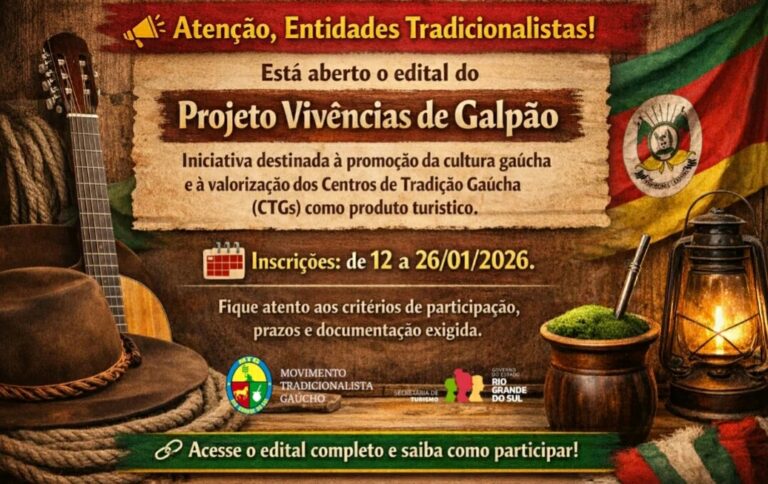 O Movimento Tradicionalista Gaúcho (MTG) abriu oficialmente, nessa segunda-feira, 12 de janeiro, as inscrições para o projeto piloto Vivências de Galpão, que