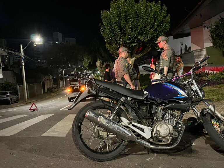 Um motociclista ficou ferido na noite de sexta-feira (28) após um acidente no cruzamento da Rua Capitão Eleutério com a Rua Eduardo