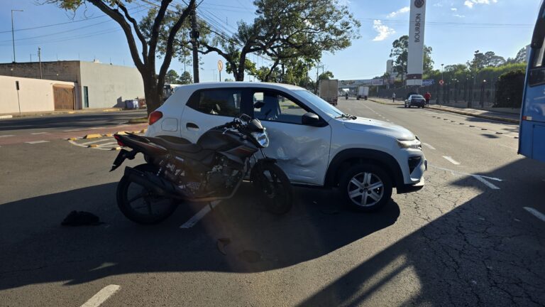 Na manhã desta terça-feira (3), um acidente de trânsito foi registrado na Avenida Brasil Leste, em frente ao Bourbon Shopping, em Passo