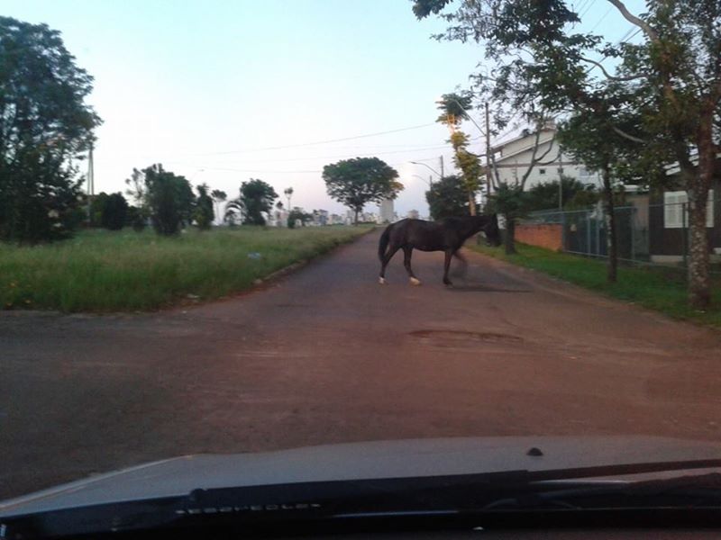 Fica o alerta para os donos dos cavalos adotarem os cuidados necessários. Na foto, captada pelo Departamento de Jornalismo da Rádio Planalto, aparece um animal circulando em via pública no bairro Petrópolis.