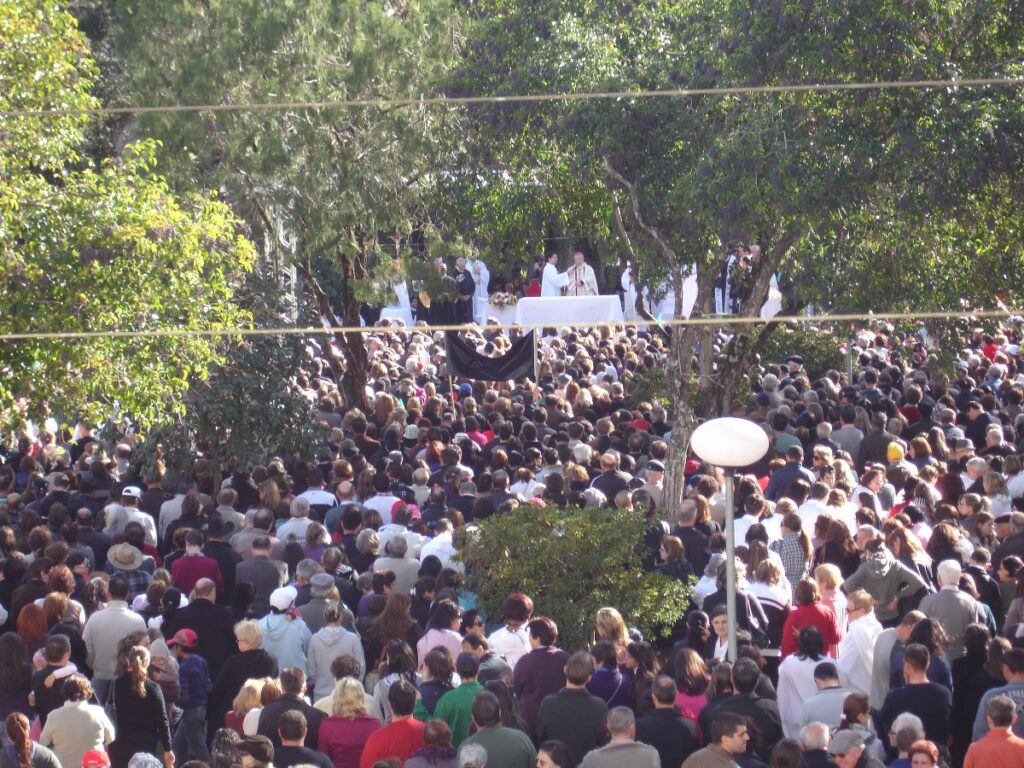 Cerca de seis mil pessoas se reuniram em cinco pontos diferentes da cidade e seguiram em caminhada até a praça da Paróquia Santa Terezinha, onde aconteceu a grande celebração.