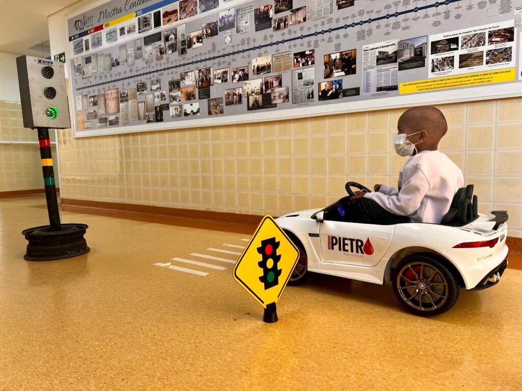 A semana começou de forma especial no Centro Oncológico Infantojuvenil do Hospital São Vicente de Paulo, em Passo Fundo. Entre corredores sinalizados e sorrisos, às crianças internadas participaram de um test drive com os novos veículos doados à instituição. Haram, de 5 anos, e Daniel, de 3, foram os motoristas habilitados a pilotar um carrinho e uma mini motocicleta por um trajeto adaptado com placas, faixas de pedestres e até semáforo.