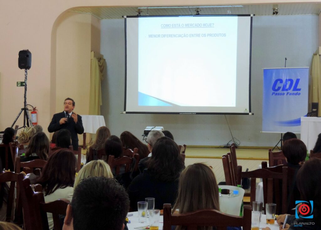 A CDL Passo Fundo realizou na noite da última quinta-feira, 4 de setembro, o último encontro do CDL nos Bairros 2014. O evento teve como objetivo fortalecer o vínculo entre o associado e a entidade, além de promover a integração entre os bairros participantes. Com a palestra “Planeje seus negócios e venda mais”, ministrada pelo consultor empresarial Olavo De Geroni, o encontro aconteceu no Clube Caixeiral, no Centro. A atividade contou com a participação de associados, membros da diretoria CDL, empresários, imprensa, entre outros convidados.