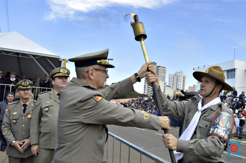 Na manhã desse domingo (07) durante o desfile militar de 7 de Setembro, uma centelha da chama crioula foi levada para o Parque da Roselêndia, dando início aos Festejos Farroupilha.