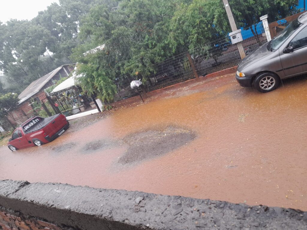 Moradores da Rua Tenente Clemente Bernardon, no bairro Roselândia, relataram acúmulo significativo de água após a chuva intensa. Segundo eles, a situação é recorrente sempre que há precipitações mais fortes na região.