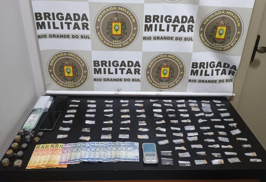 Durante a ação, foram apreendidos cento e uma pedras de crack, dinheiro, dois telefones celular, uma balança de precisão e materiais usados para embalar os entorpecentes.