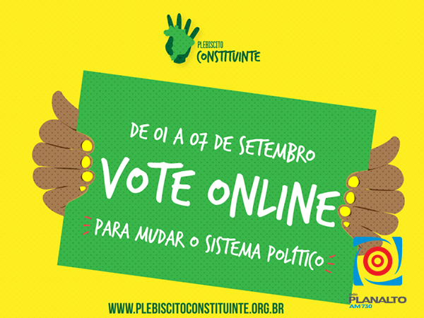 A partir desta segunda-feira, 01, até o próximo dia 07, acontece a votação para o Plebiscito Popular pela Constituinte. Em Passo Fundo, serão 30 urnas disponíveis. Além da votação pela cédula, é possível votar pela internet, no endereço http://www.plebiscitoconstituinte.org.br/vote-no-plebiscito. Para votar, é necessário apenas o número do CPF.