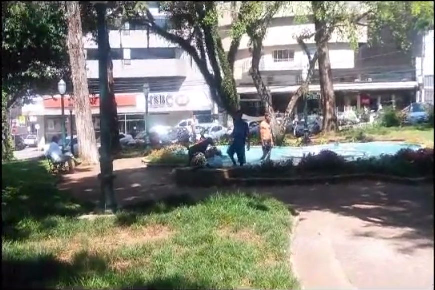 No vídeo os dois homens entram tranquilamente na água, que é impropria para o banho. Segundo relato do morador Jonnathan Pires que passava pelo local, o fato aconteceu por volta das 13h30 de sábado,29. “É um absurdo o descaso por parte da população. Cadê os guardas? Presenciei um banho com direito a mergulho, o cúmulo do absurdo ! Até quando teremos de ver imagens como estas, de total desrespeito pelo que é nosso? Uma coisa é certa, ou mudam os guardas ou voltará a ser como antes, abandonada a praça. Estou indignado pois não é a primeira vez que exponho cenas como esta da nossa praça e nada até o momento foi feito”, declarou o Jonnathan em seu perfil no facebook.
