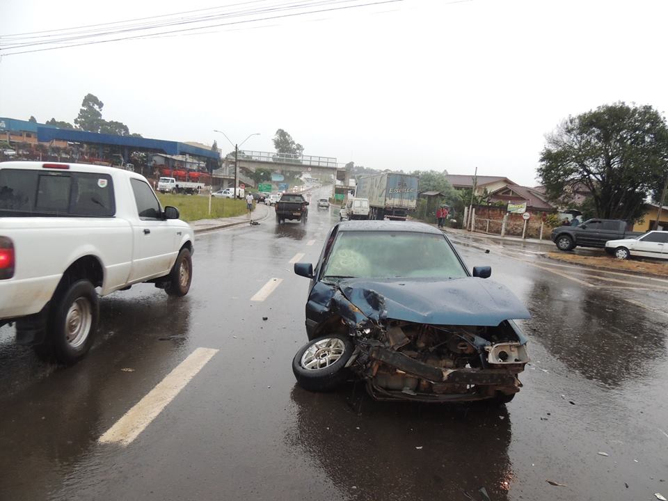 O caminhão seguia no sentido Lagoa Vermelha/Passo Fundo quando colidiu no Escort, que tentava acessar a rodovia. Com o impacto o veículo rodopiou na pista e ficou parado na contra-mão.