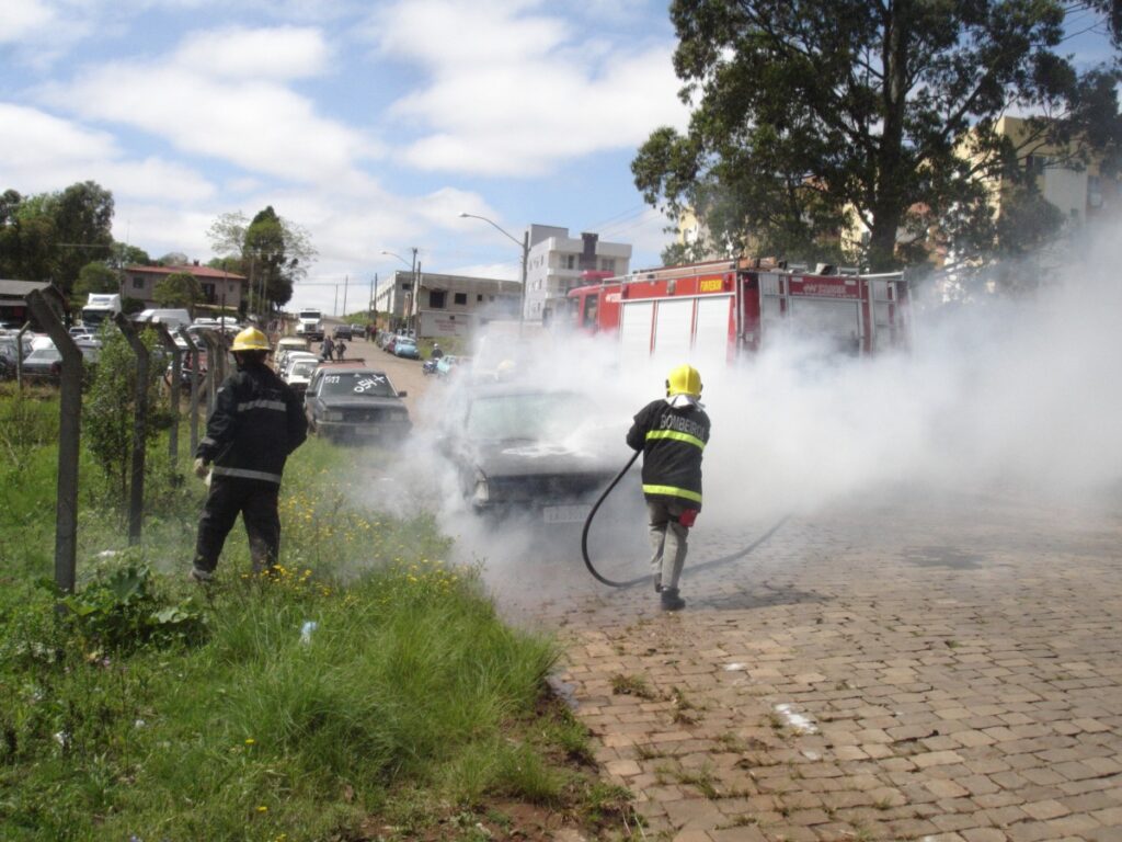 O corpo de Bombeiros foi acionado e combateu o incêndio antes que se alastrasse até o tanque de combustíveis do automóvel, controlando as chamas.
