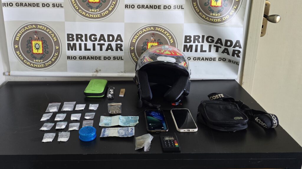 Em revista no automóvel, os policiais apreenderam uma bolsa contendo 14 porções fracionadas de cocaína e uma porção maior de maconha. Também foram apreendidos dinheiro, celulares, objetos utilizados para o consumo e comercialização de entorpecentes, além dos veículos envolvidos.