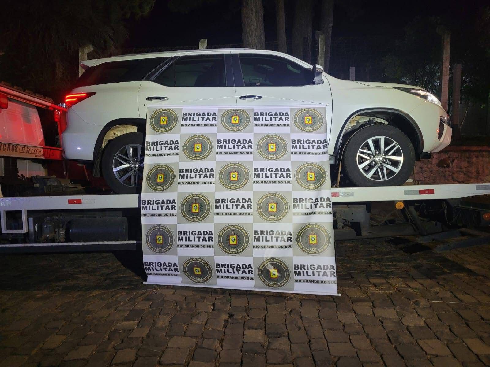 Durante patrulhamento, os policiais identificaram uma movimentação suspeita envolvendo dois veículos: uma Toyota SW4, com placas de Paraí, e um Renault Sandero, emplacado em Canoas. Segundo os agentes, o Sandero atuava como batedor da caminhonete.