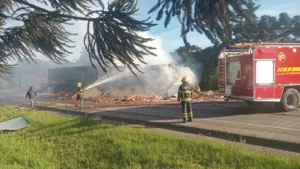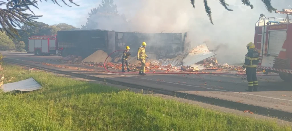 A equipe de resgate da PRF e a Corproação de Bombeiros está no lcoal para atendimento.