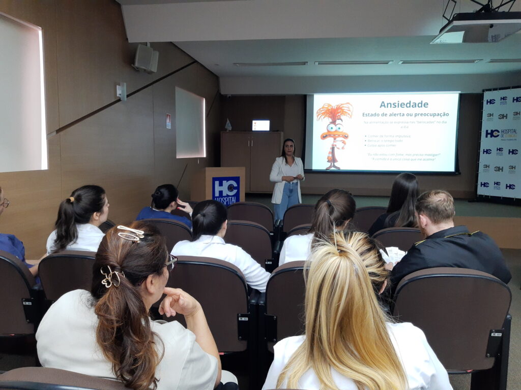 “O SESMT, juntamente com os demais setores do HC, está promovendo ações voltadas à saúde mental dos colaboradores. Hoje tivemos a palestra sobre o “comer emocional” e teremos ao longo dos meses mais palestras sobre o tema com a finalidade de colaborar com a saúde mental e com o bem-estar dos trabalhadores.” enfatizou o engenheiro de segurança do trabalho Nataniel Vicensi.