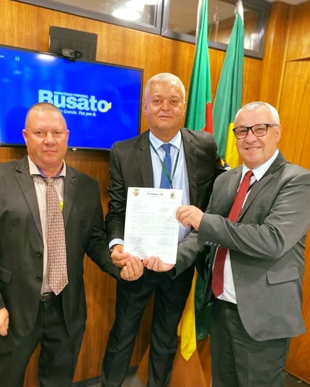 O vice-prefeito de Ernestina, Leonir Vargas, e o vereador Ari Mello (PDT) estiveram em Brasília nesta quinta-feira (25/02), onde apresentaram novas demandas do município ao deputado federal Luiz Carlos Busato (União Brasil). A comitiva foi recebida pelo assessor parlamentar Enio Brochado.