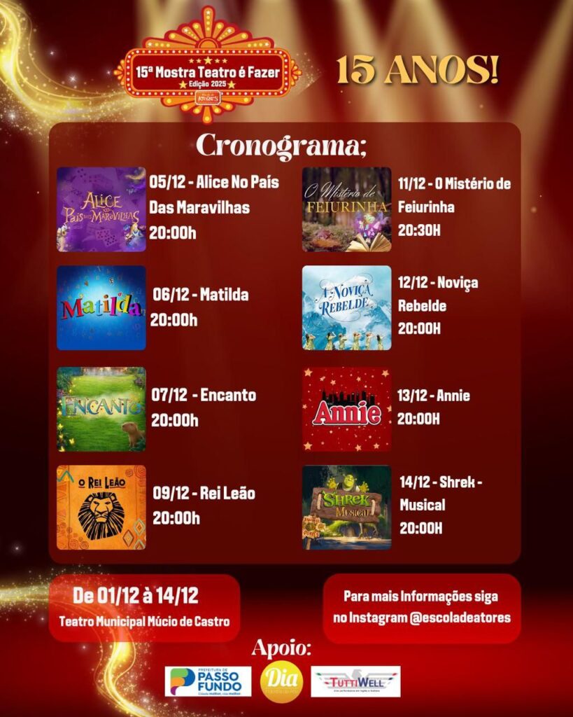 “Essa Mostra vai ser inesquecível. Estamos trazendo para Passo Fundo uma atmosfera inspirada diretamente na Broadway — com coração, emoção e grandiosidade. É um momento para sentir a verdadeira potência da arte da nossa cidade.”