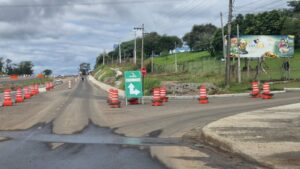 Na saída, foram definidos dois pontos principais: pela ERS-332, facilitando o deslocamento para diferentes regiões, e pela via lateral do parque, especialmente para quem segue em direção à área urbana.
