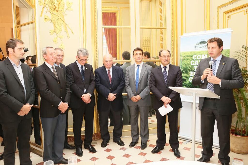 Representantes de 47 países que participam da 83ª Conferência da Organização Mundial de Saúde Animal na França, prestigiaram, nessa quarta feira (27), o lançamento da Expointer 2015, realizado na Embaixada Brasileira em Paris. Na ocasião, o conceito “Com o Campo, Todo Estado Cresce”, que irá nortear toda a campanha da Expointer este ano, foi divulgado pelo governador José Ivo Sartori e pelo secretário da agricultura e pecuária, Ernani Polo, que estiveram acompanhados no evento por delegação gaúcha que participa de missão à Europa.