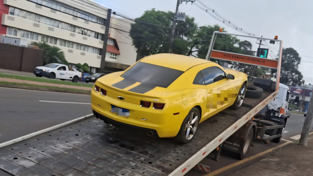 Na tarde desta quarta-feira (1º), a Guarda Municipal de Trânsito de Passo Fundo retirou de circulação das ruas um Chevrolet Camaro de cor amarela, pertencente a um circo itinerante instalado na cidade, durante fiscalização de rotina realizada na Avenida Brasil Leste, bairro Petrópolis.