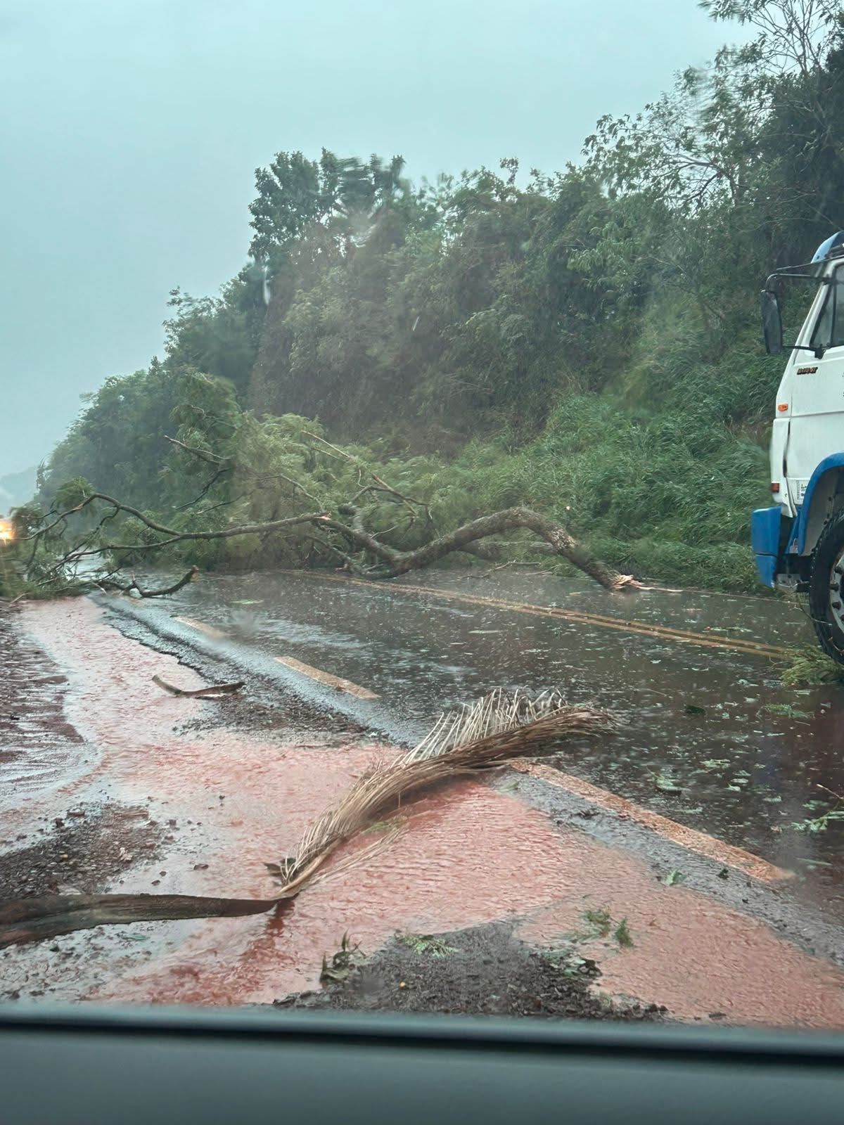Além dos danos na área urbana, motoristas enfrentam dificuldades nas estradas da região. No trecho entre Ibirubá e Selbach, nas proximidades da Indumave, há registro de árvores caídas sobre a pista, causando bloqueio e trânsito lento.