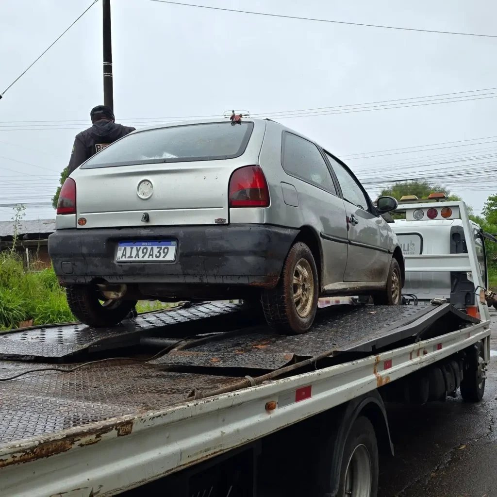 Na manhã desta quarta-feira (10), o Volkswagen Gol furtado no Centro de Passo Fundo foi localizado no bairro Valinhos, na área da estação de tratamento de esgoto da Corsan. O veículo estava em uma região afastada, às margens de um açude dentro da área operacional da companhia.