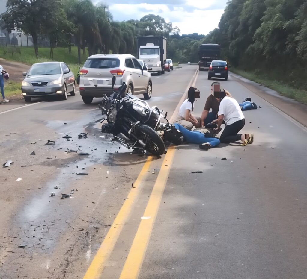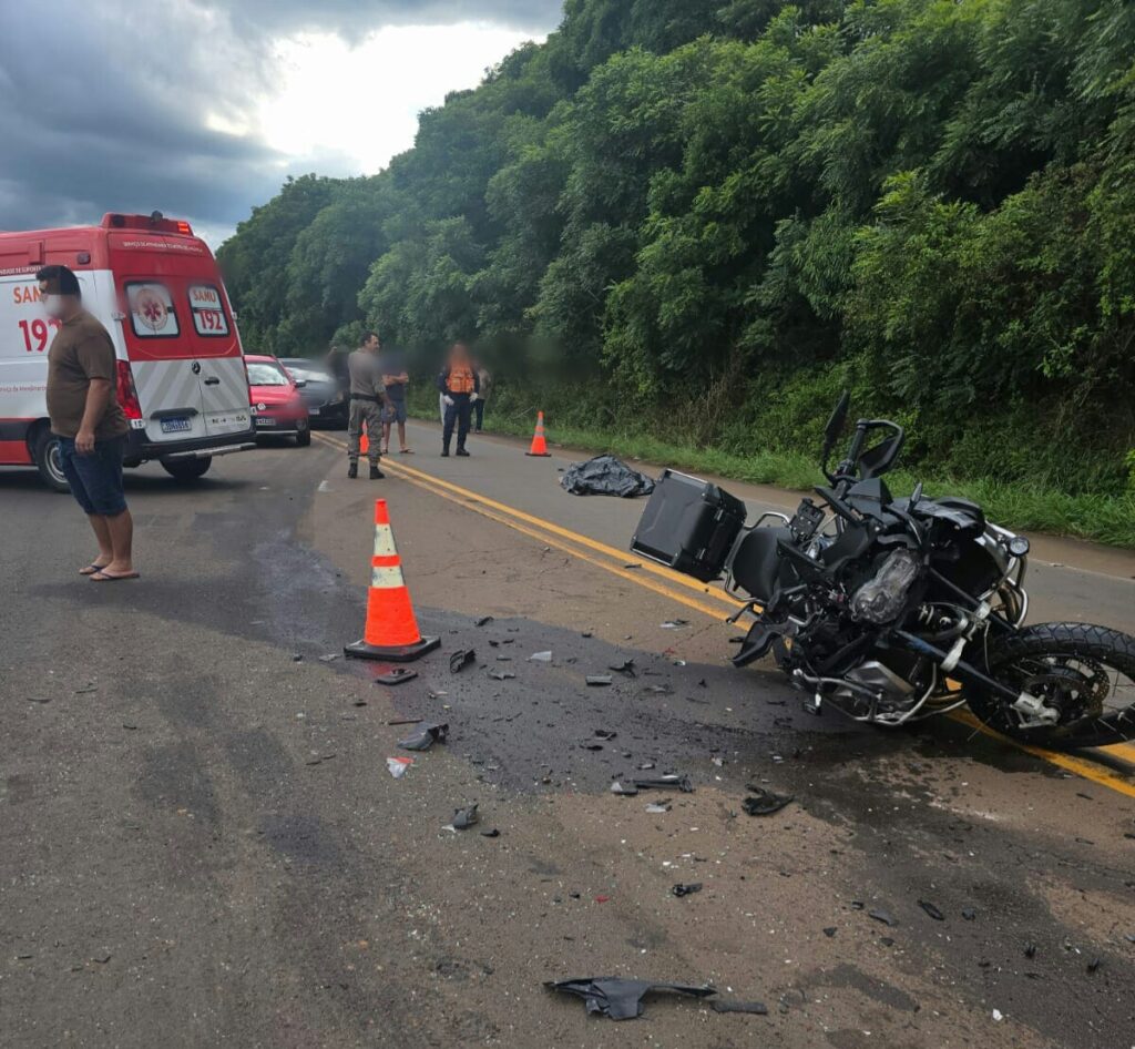 Na tarde deste domingo (11), um grave acidente de trânsito foi registrado na RSC-153, em Passo Fundo, nas proximidades do Santuário Nossa Senhora Aparecida. A colisão envolveu uma motocicleta BMW e uma caminhonete Blazer.