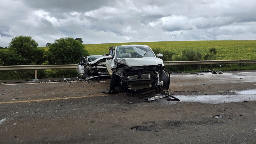 Na tarde desta segunda-feira (23), um grave acidente de trânsito foi registrado na BR-285, no trecho entre Passo Fundo e Carazinho, envolvendo um Peugeot 208 e uma Volkswagen T-Cross, ambos com placas padrão Mercosul.