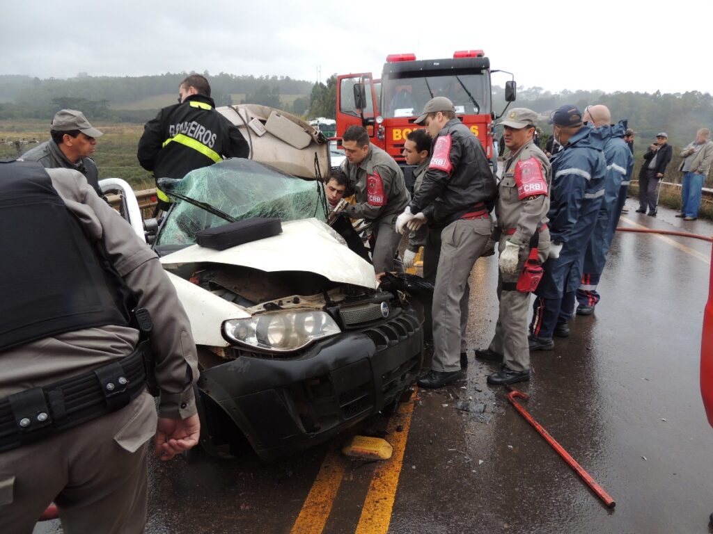 O Fiat Strada ficou completamente destruído e uma ação conjunta do Corpo de Bombeiros, socorristas do SAMU e policiais rodoviários foi necessária para retirar o jovem motorista que ficou preso às ferragens.