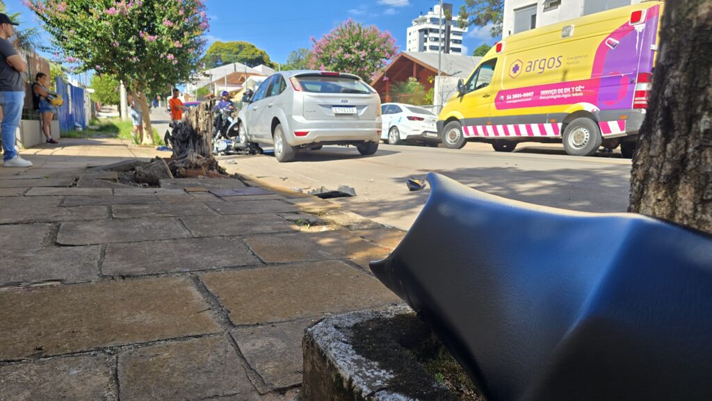 Conforme as informações apuradas no local pelo repórter Jeferson Vargas, a motocicleta seguia pela rua Tiradentes e, ao cruzar a rua Carolina Vergueiro, não teria respeitado a sinalização de parada obrigatória e acabou sendo atingida pelo Ford Focus, que trafegava pela Carolina Vergueiro.