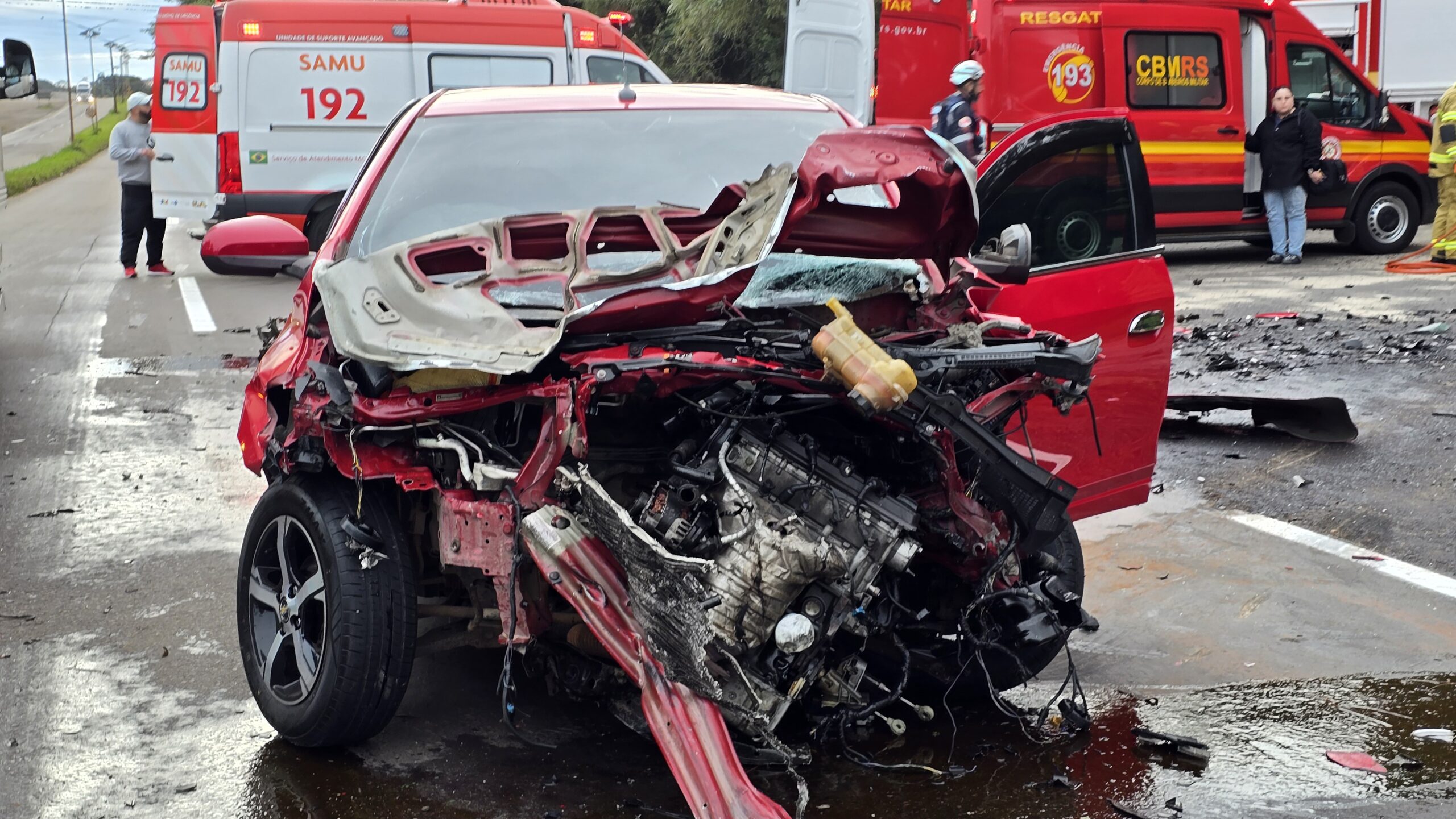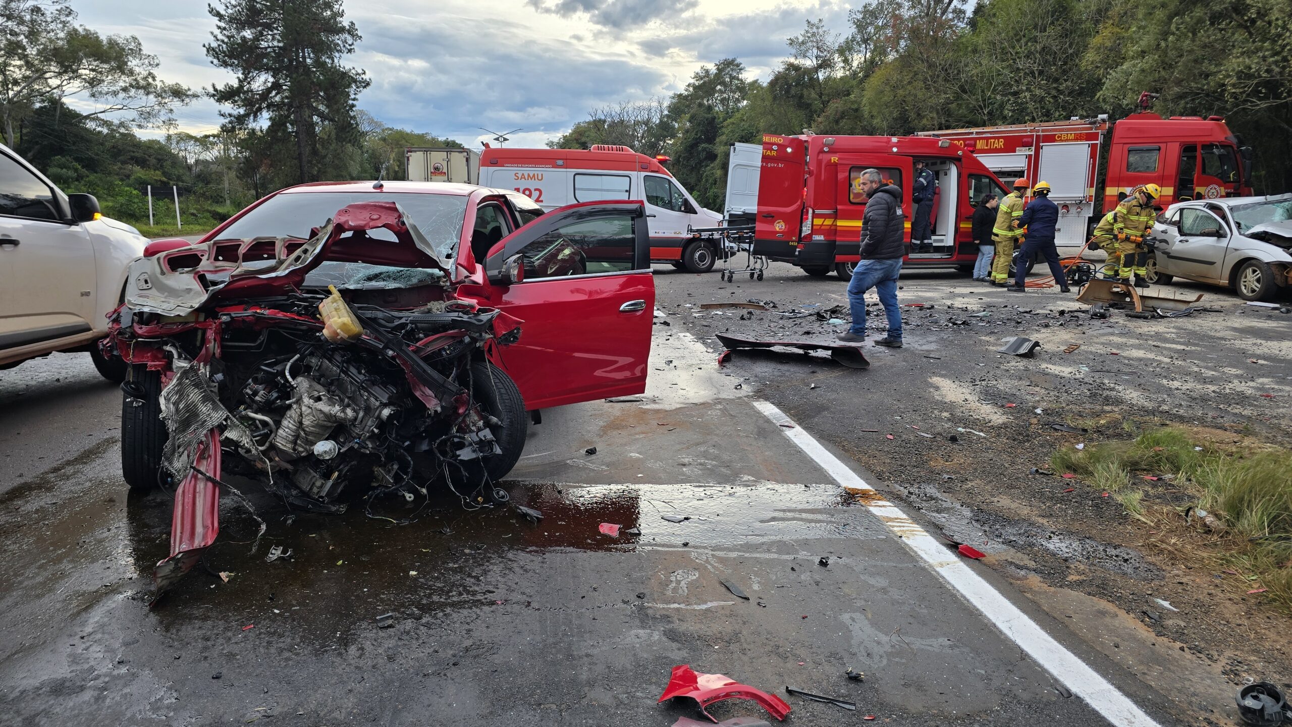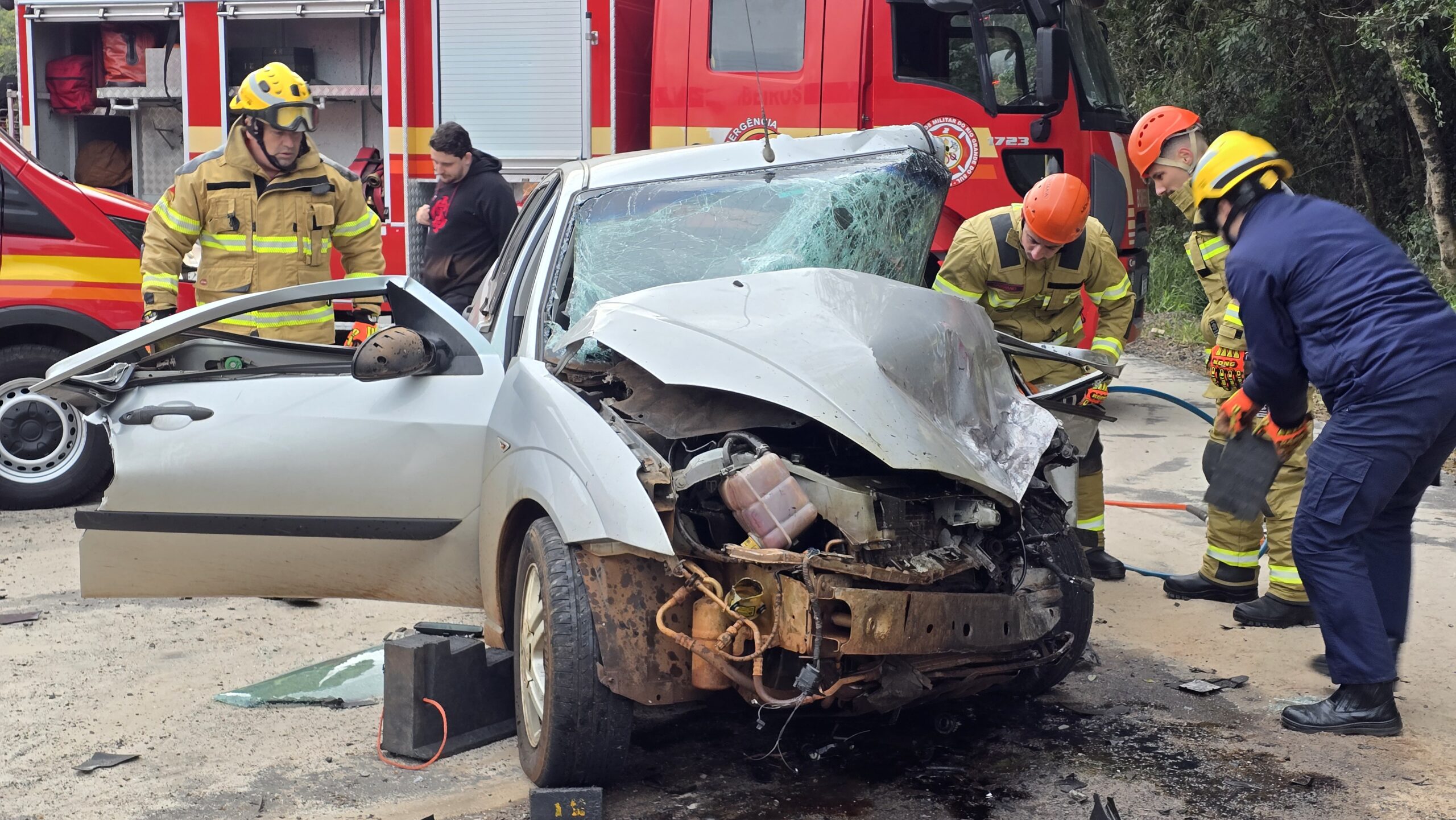 Testemunhas relataram que o Chevrolet Prisma estaria em alta velocidade no momento do acidente. O impacto causou destruição total dos dois veículos. O Corpo de Bombeiros Militar de Passo Fundo atuou no desencarceramento da vítima para posterior identificação. O condutor do Prisma foi socorrido pelo Serviço de Atendimento Móvel de Urgência (SAMU) e encaminhado ao Hospital São Vicente de Paulo, em Passo Fundo, com estado de saúde estável.