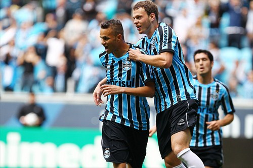 A resposta gremista foi imediata: aos 10 minutos, Dudu recebeu na frente da área e fez o passe perfeito para Lucas Coelho, dentro da área. O atacante tomou à frente da marcação e acabou derrubado pelo zagueiro. Penalidade máxima marcada pelo árbitro. Luan fez a cobrança forte, no ângulo direito, sem chances para Luiz.