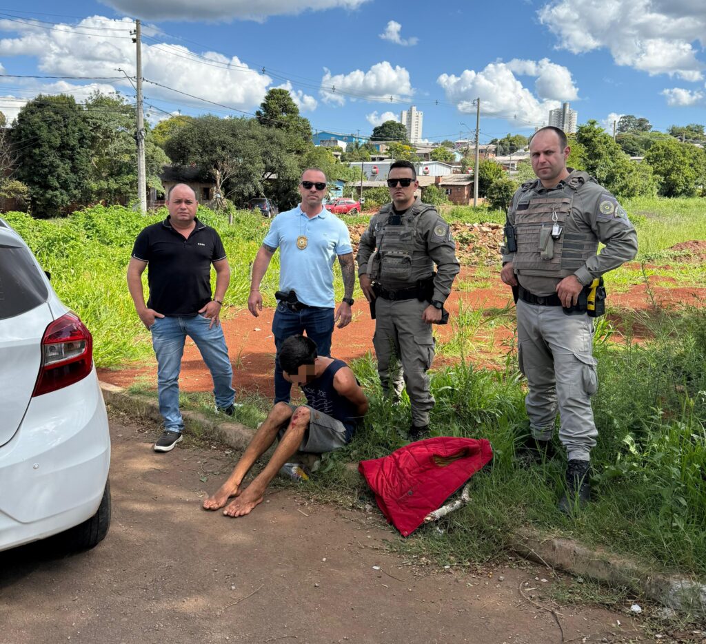 O proprietário da empresa de vigilância, juntamente com o policial civil Diego Milani, morador do bairro, acompanhou o suspeito, que foi localizado e detido ao sair do matagal.