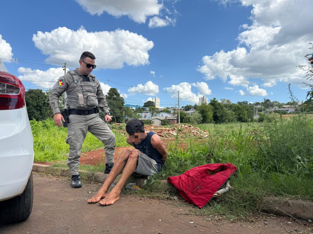 Durante as diligências, o indivíduo foi visto na rua Domingos Luiz Ughini. Ao perceber que seria abordado, ele abandonou a motocicleta e fugiu a pé, entrando em uma área de vegetação.