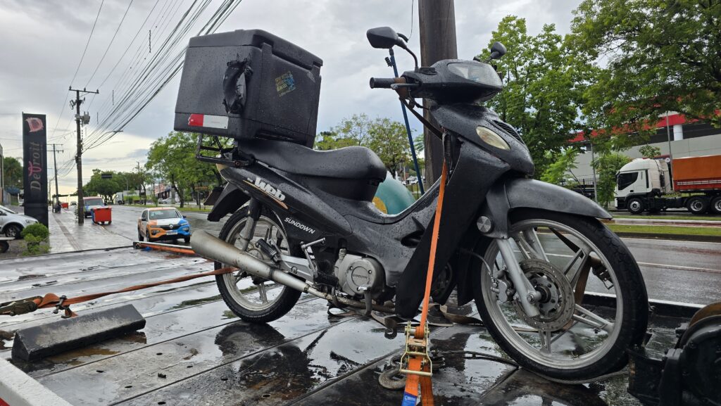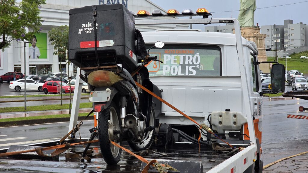 A motocicleta foi recolhida pelo Auto Guincho Petrópolis e, após a conclusão dos trâmites legais, será encaminhada ao pátio do Detran.