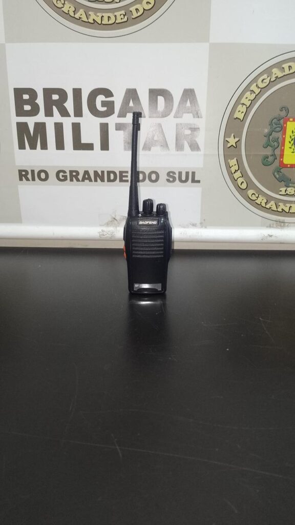 Durante a busca pessoal e veicular, foi encontrado um rádio comunicador. O equipamento foi testado e constatou-se que não operava na frequência da Brigada Militar. Questionado, o condutor alegou estar participando de um evento automotivo e afirmou ter recebido o rádio de um amigo, sem saber identificá-lo.