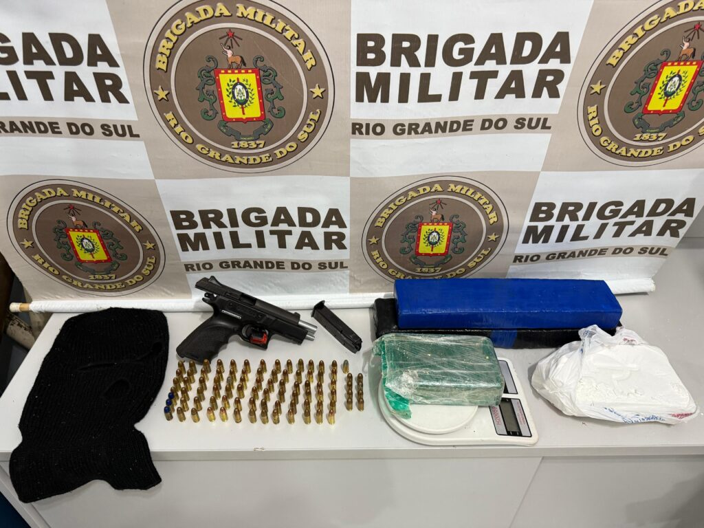 Conforme a ocorrência, as equipes receberam informações de que o indivíduo estaria armado e realizando disparos em via pública. Durante a abordagem, os policiais localizaram em uma mochila aproximadamente 900 gramas de cocaína, 2,2 kg de maconha, 830 gramas de crack, uma pistola calibre 9mm, dois carregadores, 80 munições de calibre 9mm, oito munições de calibre .380, além de uma balança de precisão e uma touca balaclava.