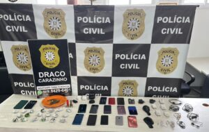 Um homem de 24 anos, que conduzia um VW/Golf de cor verde metálica pela Av. Brasil, bairro Boqueirão, perdeu o controle do veículo e colidiu na traseira de um VW/Gol de cor prata. o Gol era conduzido por um homem de 26 anos. Segundo informações fornecidas pelos policiais do Pelotão de Operações Especiais (POE), do 3º RPMon, depois de colidir contra o Gol, o motorista do Golf bateu e danificou placas de sinalização de trânsito e fugiu para o bairro Cohab II. Logo na entrada do bairro, na Avenida Nervílio Piovesan, ele perdeu o controle do carro e colidiu contra o meio fio. A ocorrência foi atendida pelos agentes da guarda municipal de trânsito e pelos policiais do poe.