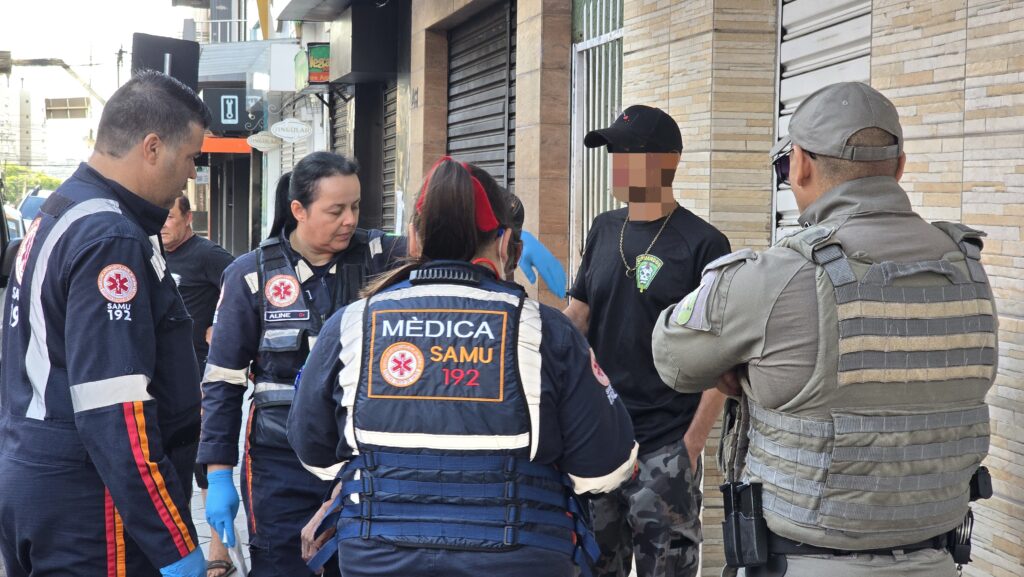 Homem ferido por arma branca é encontrado caído na Rua Coronel Chicuta, no centro de Passo Fundo