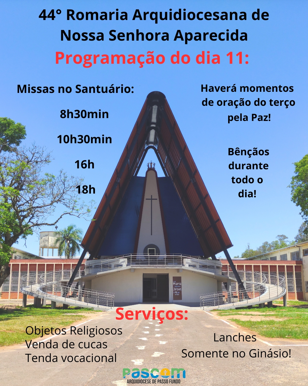 O próximo domingo será dedicado à Romaria Arquidiocesana de Nossa Senhora Aparecida de Passo Fundo. Neste ano de 2025, o maior evento do ano na Arquidiocese acontece justamente na data da Padroeira, em 12 de outubro.