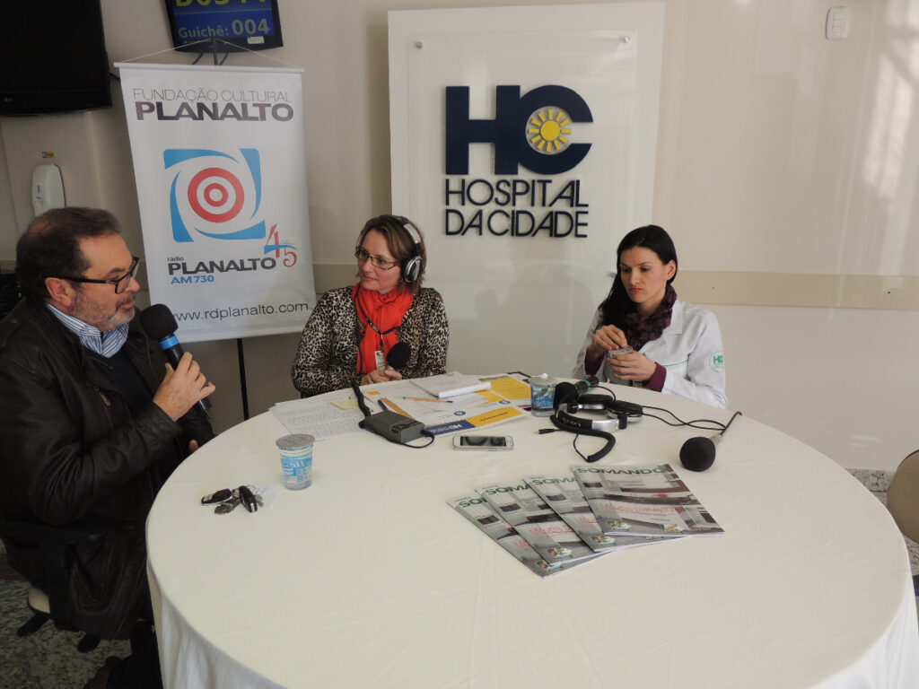 A programação em comemoração pelo centenário do Hospital da Cidade iniciou na manhã desta quarta-feira com a apresentação ao vivo no espaço multiuso, do Programa Alessandra Zanatta, pela Rádio Planalto AM. Foram duas horas de entrevistas com colaboradores, corpo médico, administradores e autoridades e pacientes que deram depoimento sobre o trabalhao, caminhada e presença do HC na comunidade de Passo Fundo e região. Um momento especial em que os ouvinte e presentes puderam conhecer um pouco mais da história centenária desta importante instituição de saúde.