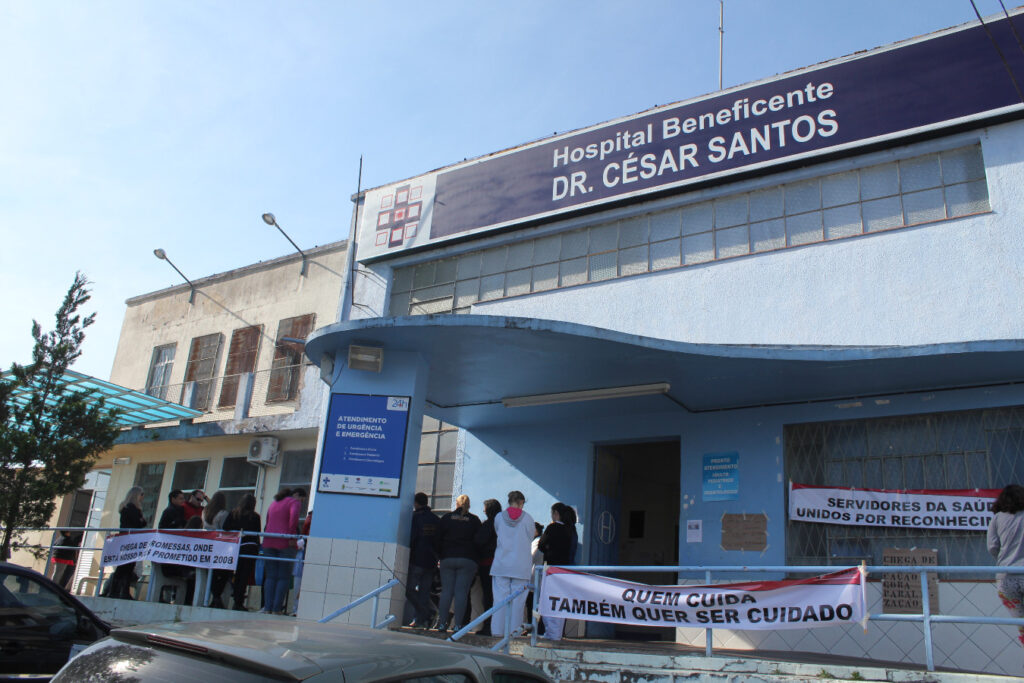 A manhã dessa quarta-feira (16/07) foi marcada por novo ato público dos servidores do Hospital Beneficente Dr. César Santos (HBCS). O grupo de trabalhadores se reuniu em frente ao hospital por volta das 10h, e contou com o apoio do Simpasso – Sindicato dos Servidores Municipais de Passo Fundo.