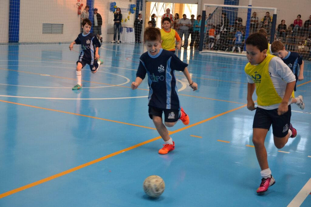 Estudantes de 2º ao 4º Ano do Ensino Fundamental I das três escolas privadas mantidas pela Rede de Educação Notre Dame no Rio Grande do Sul – Colégio Notre Dame, Colégio Notre Dame Aparecida (Carazinho) e Escola Notre Dame Menino Jesus – participaram de uma manhã de integração, motivada pela paixão nacional: a bola. Matriculados na atividade extraclasse de Futsal em cada uma das Instituições de Ensino de origem, os estudantes disputaram, no sábado (27), o I Festival da modalidade realizado pela Rede de Educação. As partidas aconteceram a partir das 8h, no Centro Esportivo da Escola Notre Dame Menino Jesus.
