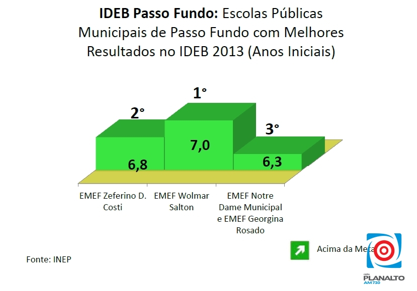 Em um panorama amplo, das 21 escolas de Passo Fundo, na linha dos Anos Iniciais, 14 ficaram acima da meta e 7 abaixo da meta. Nos Anos Finais, houve empate, com 10 acima da meta e 10 abaixo da meta. Porém, segundo a Secretaria de Educação, é preciso considerar que a redução na avaliação dos Anos Finais segue uma tendência da educação em todo o País.