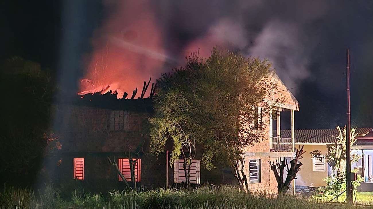Uma casa de dois pavimentos foi totalmente consumida por um incêndio na noite de sábado (20), na comunidade de Vila Campos, em Tapejara. O imóvel fica na rua principal, em frente ao salão comunitário.