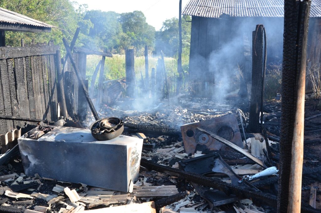O fogo consumiu por completo uma residência de madeira na rua Padre Luiz Serraglio, bairro Jardim América, na tarde de domingo, 02. De acordo com o morador do local, Robson Moreira Almeida, 27 anos, as chamas teriam iniciado depois de um curto circuito em um ventilador. Rapidamente as chamas se espalharam e quando os bombeiros chegaram ao local, pouco puderam fazer. Robson morava no local com sua companheira, uma menor de 16 anos e com os dois filhos do casal, de quatro anos e um ano e sete meses.
