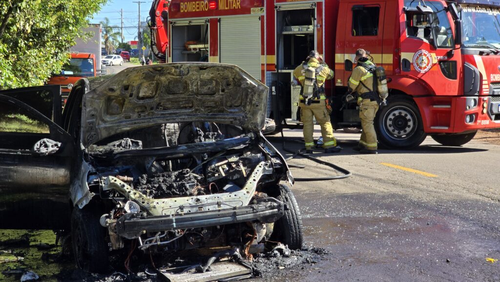 Na manhã desta quarta-feira (14), um incêndio em veículo foi registrado no Parque Farroupilha, em Passo Fundo. O caso ocorreu no cruzamento da Avenida Sinimbú com a Rua Tamôios e mobilizou equipes de emergência.