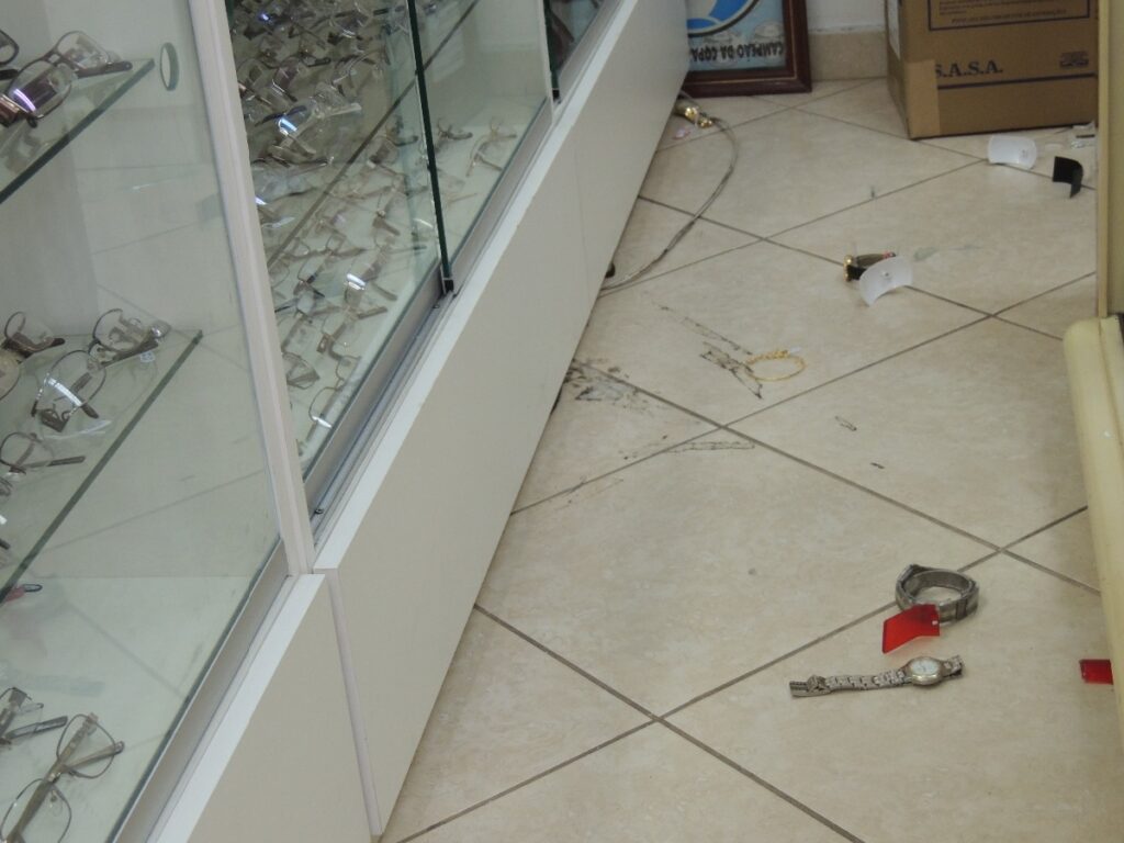 Enquanto isso, quebraram as vidraças dos balcões onde ficam expostos os produtos e roubaram diversas correntes de ouro e relógios. Em seguida saíram correndo pela rua Coronel Chicuta, em direção a rua Independência.