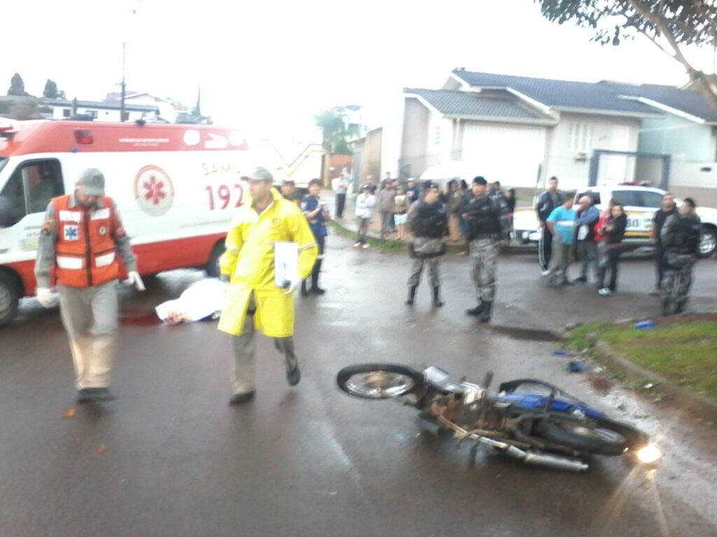 Conforme relato de pessoas que passavam pelo local, a vítima trafegava com sua motocicleta, uma Honda Bis de cor azul com placas NCH 3552, quando colidiu na lateral de um caminhão com placas GDO 2949. As informações dão conta de que o caminhão seguia na preferencial, e a vítima invadiu a via.