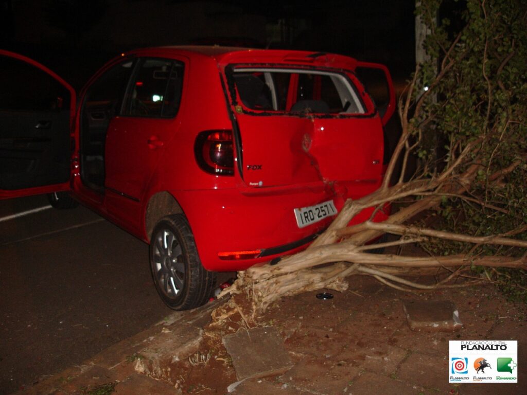 Com o impacto da colisão o veículo roubado rodopiou na rua, subiu na calçada, colidiu em uma árvore e só parou após atingir um poste de iluminação pública.